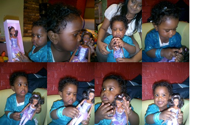 I went straight to the party. Shanti is quite a grumpy looking child (and I don’t mean that in a nasty way – she just has the cutest serious expression!), but the first time she really smiled was when she saw the Barbie doll I got her. I’m not joking! I have even captured the moments here: