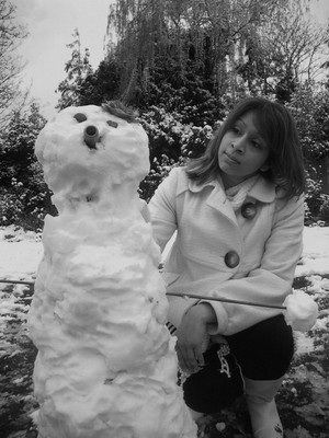 SUN: It snowed in the morning so me and Angie quickly made a snowman!