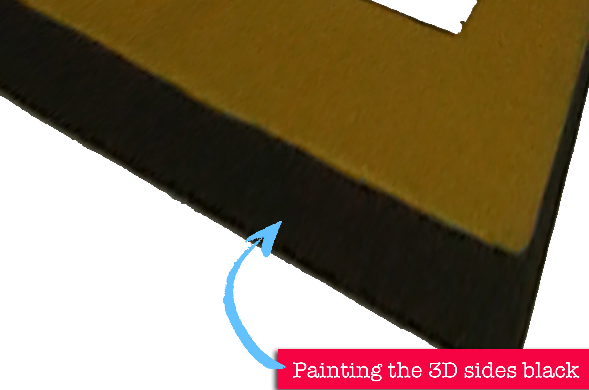 3) First I painted the 3D sides of the letters black and left to dry. The black may sound strange for a toddler’s room, but it gives the Pop Art edge to the letters.