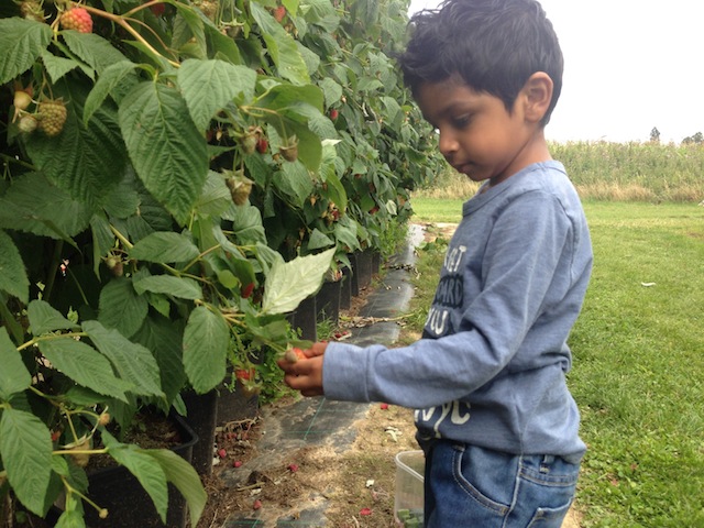 Then we picked raspberries, which Tyler thought were strawberries. Well they do look alike too!