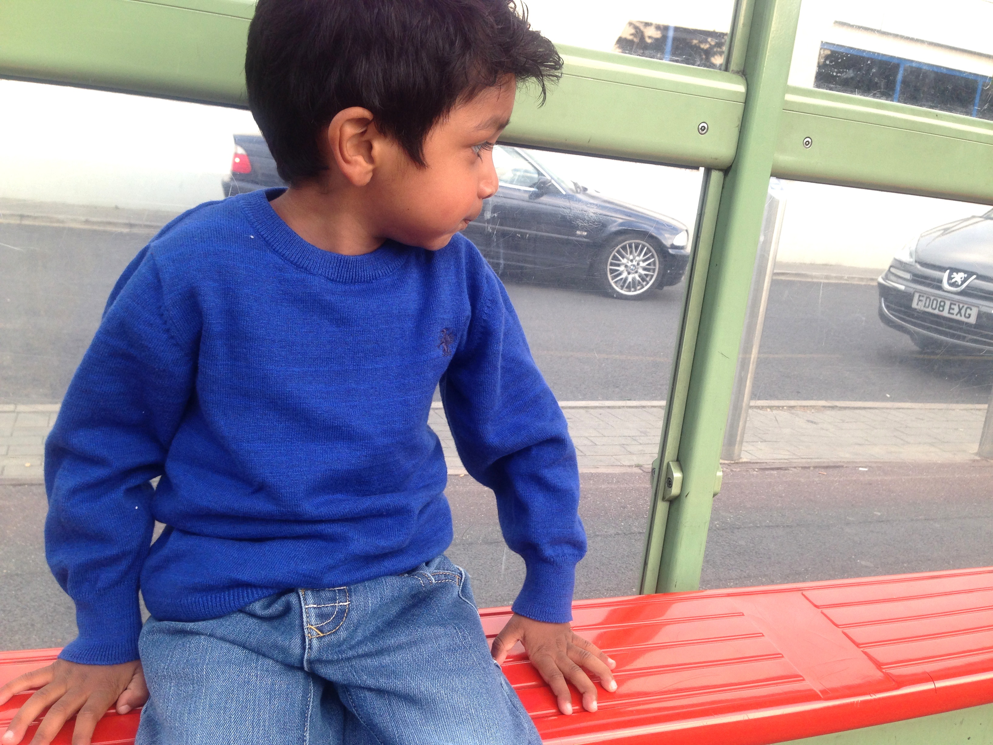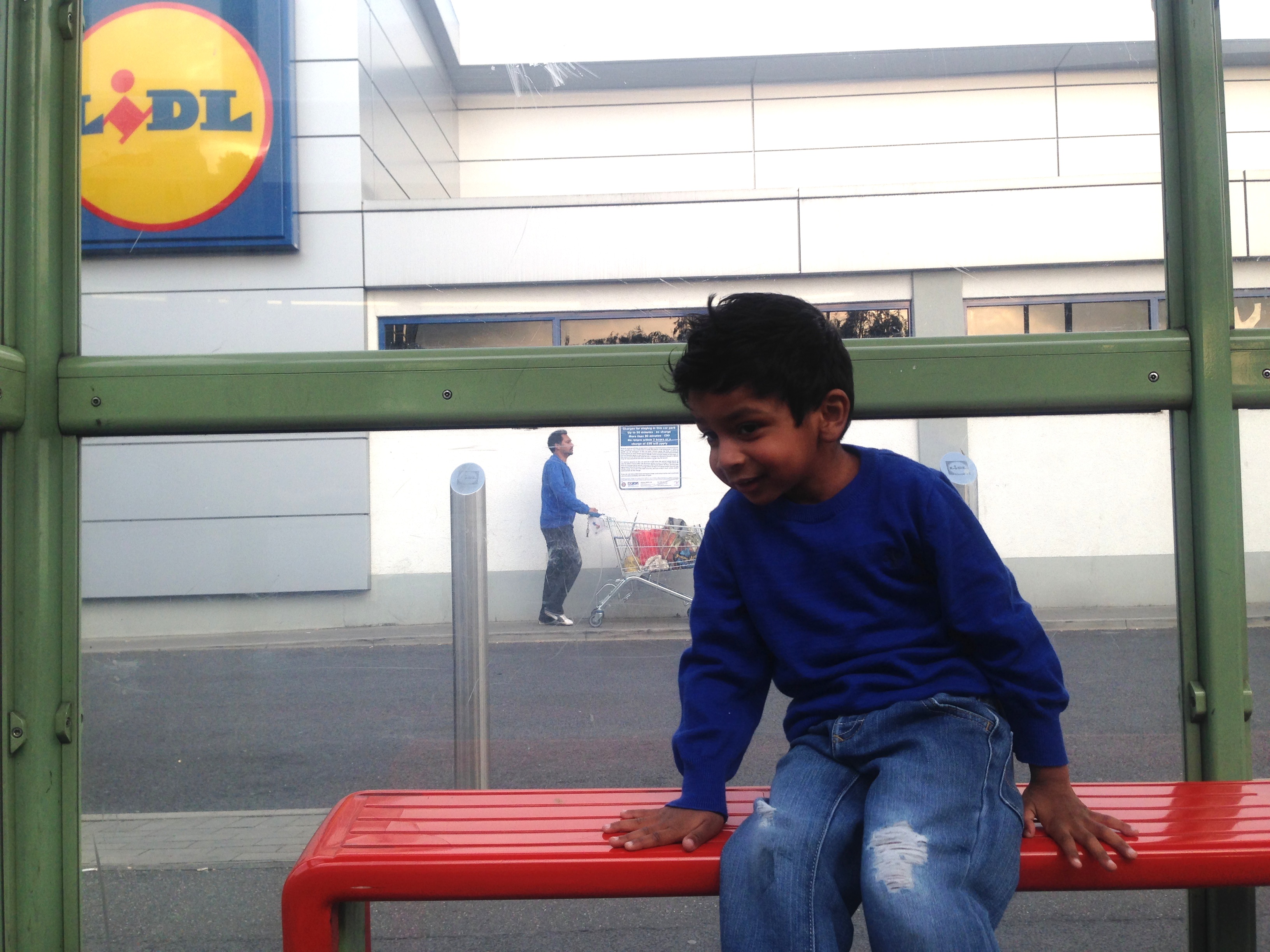 Here we are at the bus stop outside Lidl after I dragged Tyler out screaming as he wanted stay in the supermarket. The bus stop calmed him down, as he does love buses.