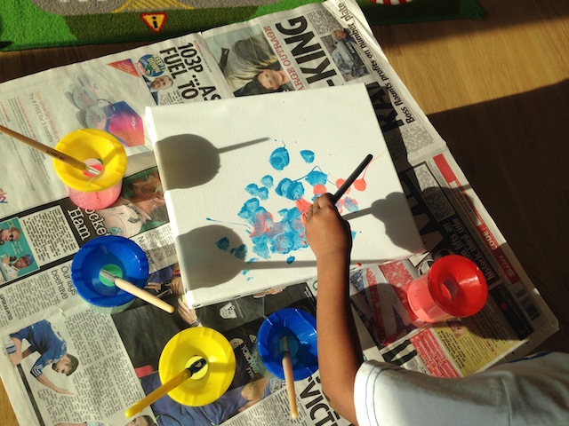 Next time you get your child painting, why don’t you try it on canvas and make some art! You can get canvases pretty cheap these days, from shops like The Works. And that way you’ll have some unique and personal art on the wall, worth £millions of course 😉