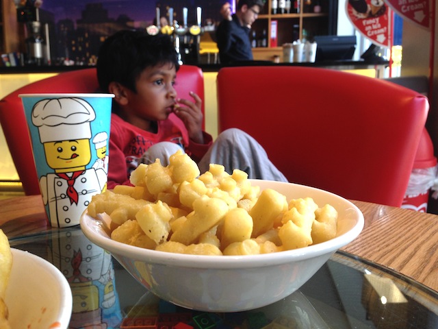 It is so worth going to the Resort Hotel to eat, as the decor is awesome! I love the Lego bricks in the tables, but not just that – there is Lego artwork on the wall, so much to look at.