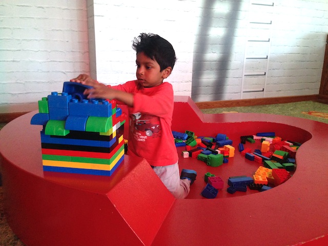 There’s a Duplo area inside for kids to play. We were here a good while building things.