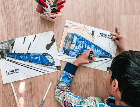On Wednesdays we take part in the All the Stations crafting on YouTube (you know Geoff and Vicki, the train people) This week we made stationmaster hats from paper. Such a good idea!