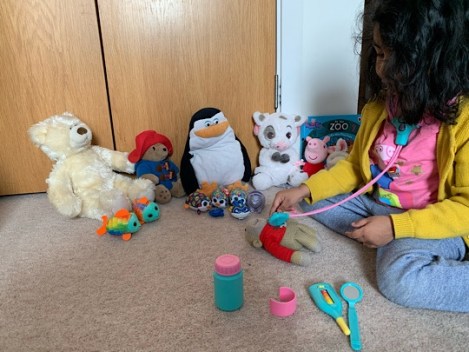 Monday’s homeschool revolved around a Zoo Vet story, and I just love this photo of Lily playing zoo vet with her toys.