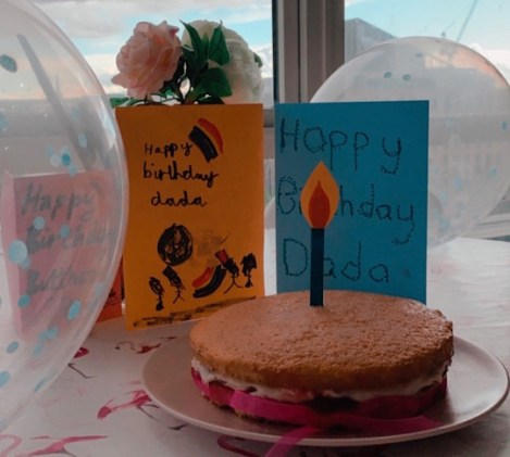 Dada’s birthday was obviously a day at home as we are in lockdown. I blew up balloons and we gave Dada the cards we made earlier in the week at our home Costa. In the afternoon Lily and I made a birthday cake. We had a disco at the end of the day which was so much fun, raving to the Sing album with our disco lights on.