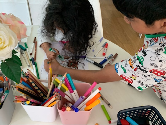 The children doing some colour by numbers from The Messy Magpie story. Lily enjoys it when Tyler does Nursery work with her. In the evening we walked in Lascelles Park.