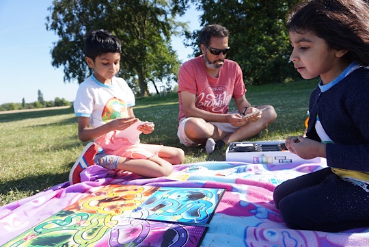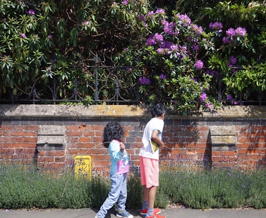 It took me all day to get these kids out of the house on this beautiful sunny day, but finally at 4pm we were walking through the Herschel Park Nature Reserve, finding a little hill that looks over the M4 motorway. We had a picnic in the main park and then walked around the trees and flowers.