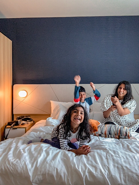 We stayed in a gorgeous apartment in the Residence Inn. It had a fully working kitchen, there’s even a dishwasher! The living room has a sofa bed which was set up for the kids to sleep in, and there’s a separate bedroom with a super stylish bathroom.