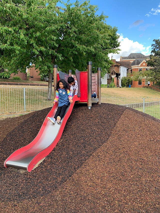 Batchelor’s Acre playground is hidden behind Peascod Street. Go down the alley next to Kokoro (opposite Superdrug), walk past the back of TK Maxx and you’ll find the playground. Windsor Library is here too. In the summer months they sometimes put the fountains on if you want to let your kids have a splash.