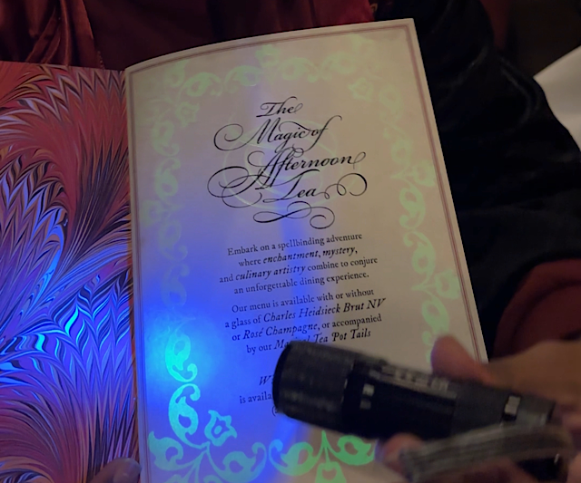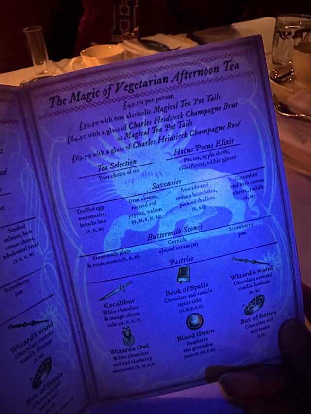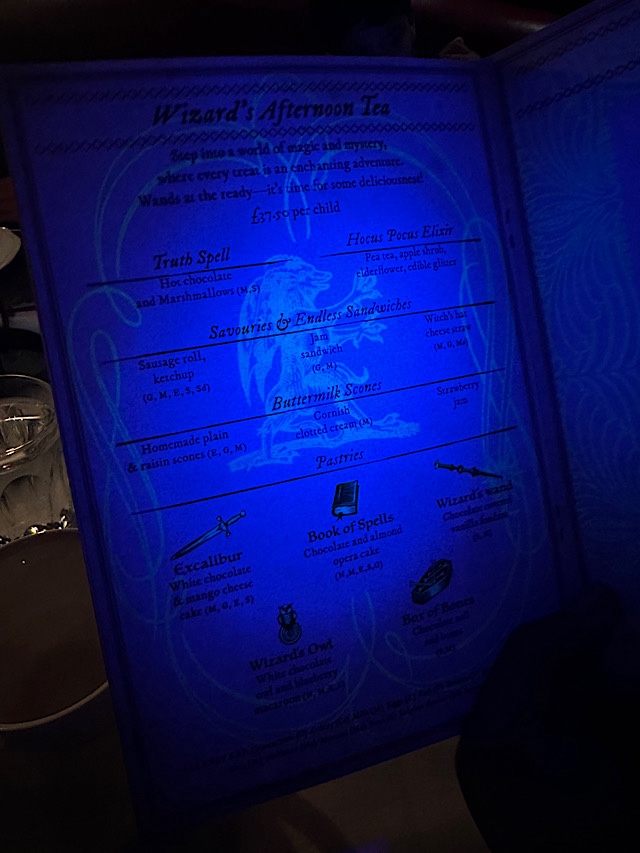 The afternoon tea is immersion and my children, dressed in their Harry Potter robes, really felt like wizards, creating potions and how the food all had a wizarding theme, and music was playing from the films. And you’re given UV torches to read the menus. Just brilliant. Below is more info from their press release.